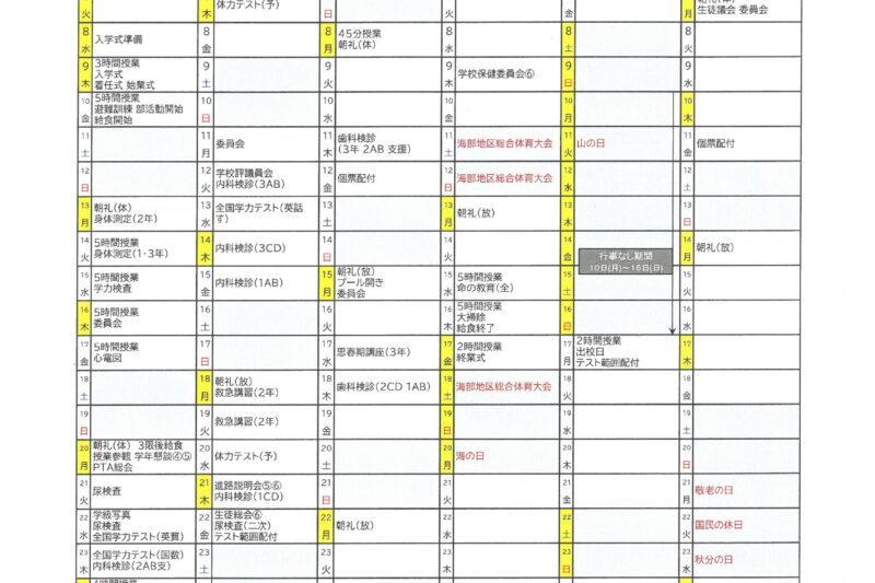 行事予定表