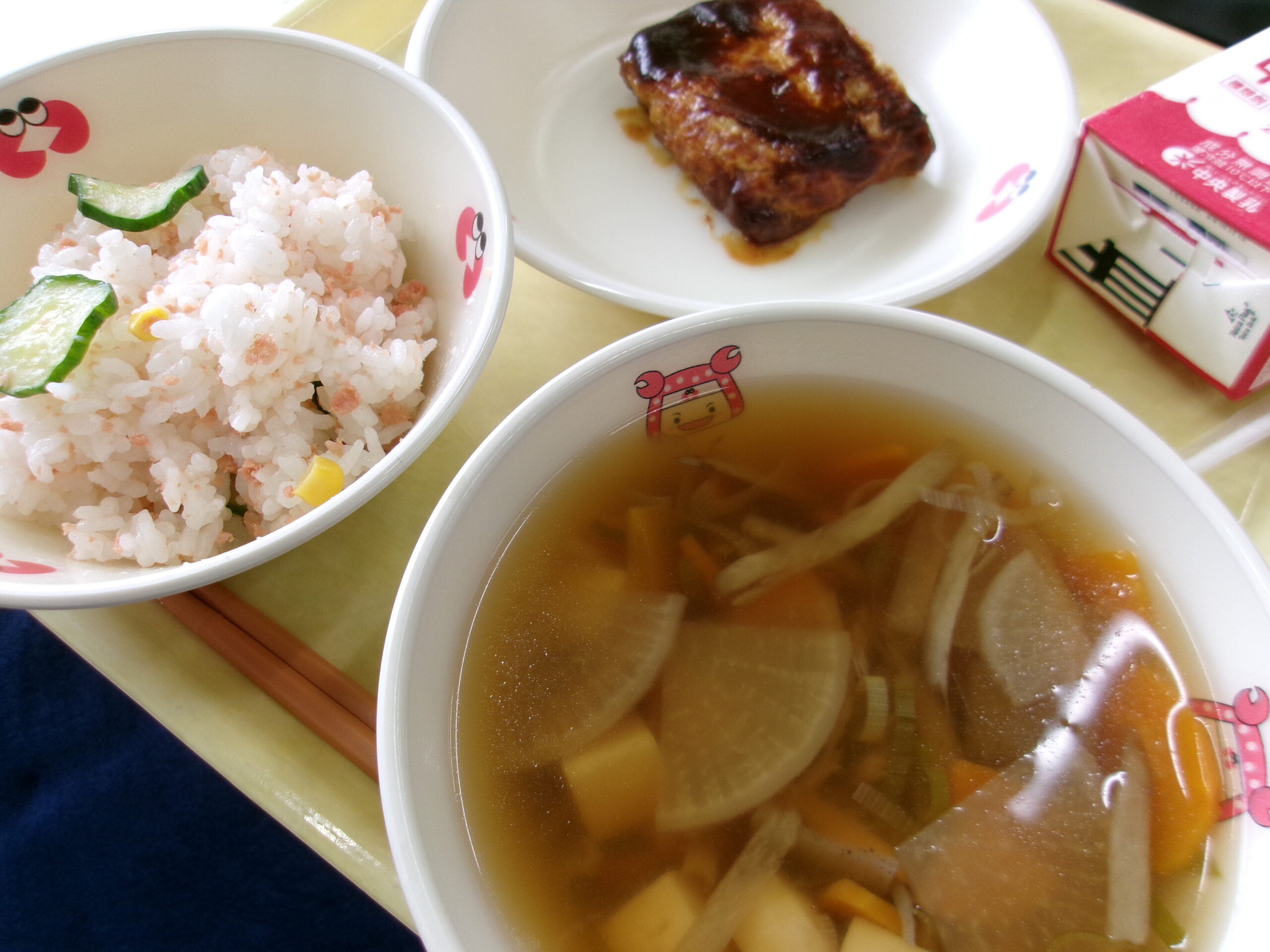 学校ブログ 今日の給食 9月4日(木) 2025.09.042025.10.20 by kaniekita002 2025年9月4日(木) 【献立】牛乳 ご飯 鮭ときゅうりの混ぜご飯の具 けんちん汁 しのだの甘みそがけ <鮭(さけ)の話> 今日の混ぜご飯の具は、「鮭」です。鮭は、川で生まれ、アメリカやロシアの近くの海まで行って大きくなります。その後、卵を産むために自分の生まれた川に戻ってきます。たくさんある川の中から、自分の生まれた川にもどることができるのは、幼い頃にかいだ川のにおいを覚えているからだと言われています。幼い頃の記憶を頼りに戻るなんて、びっくりさせられますね。