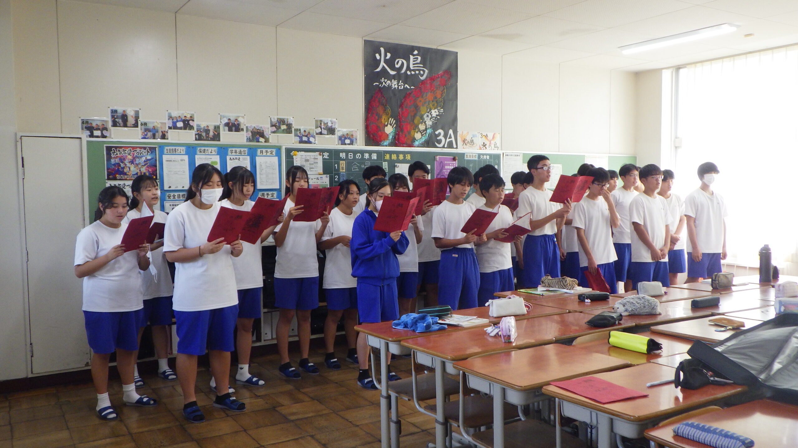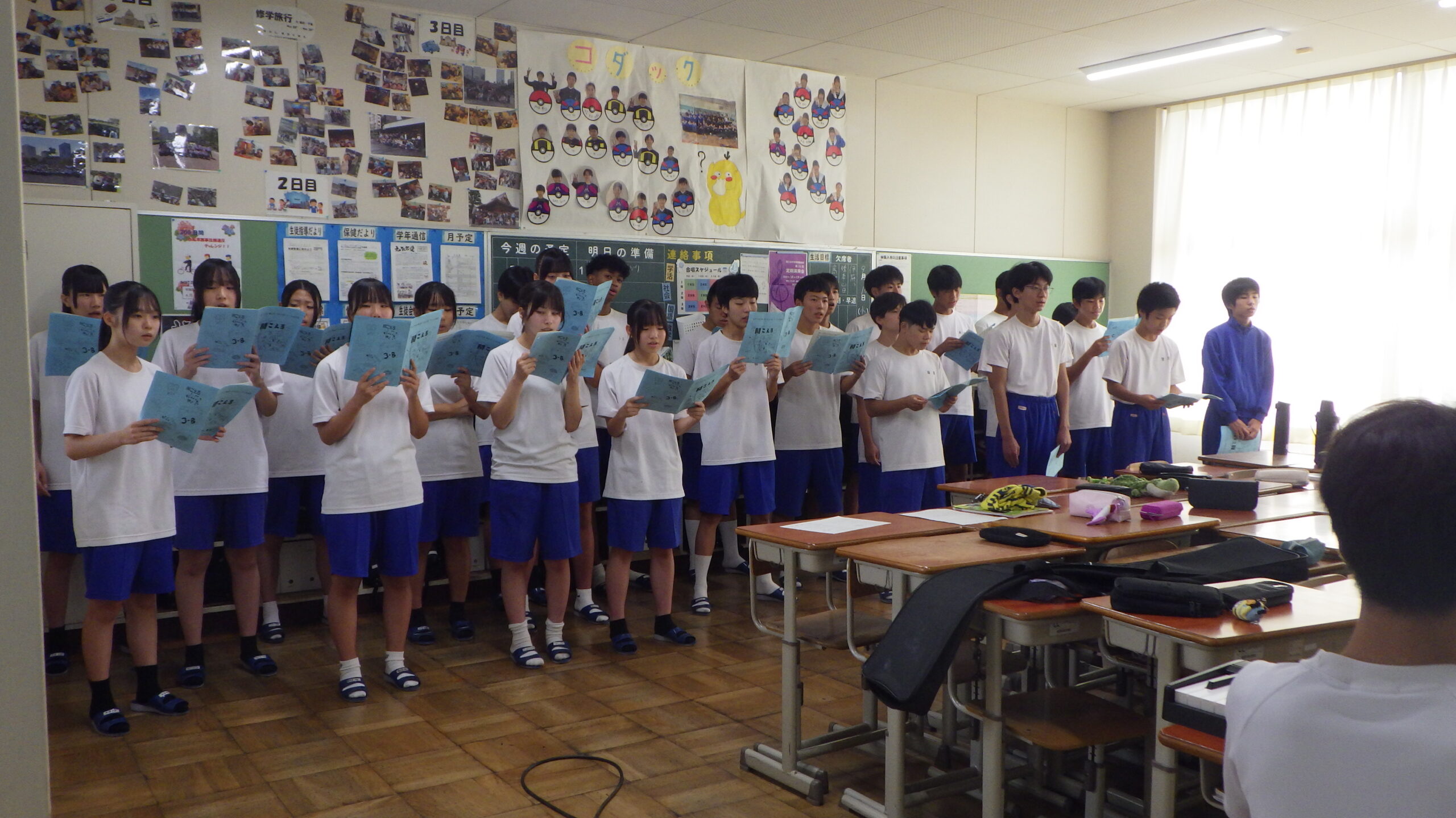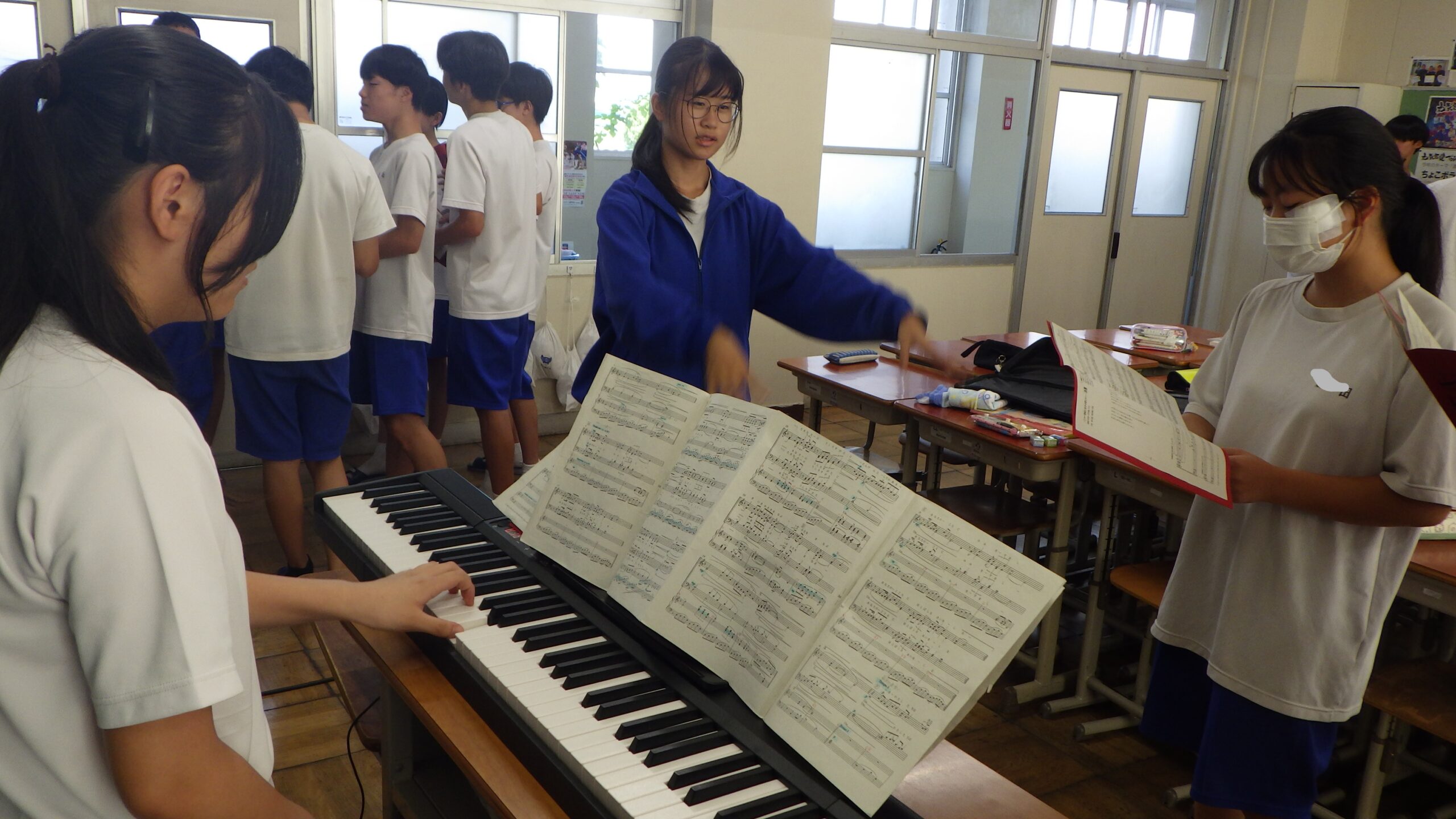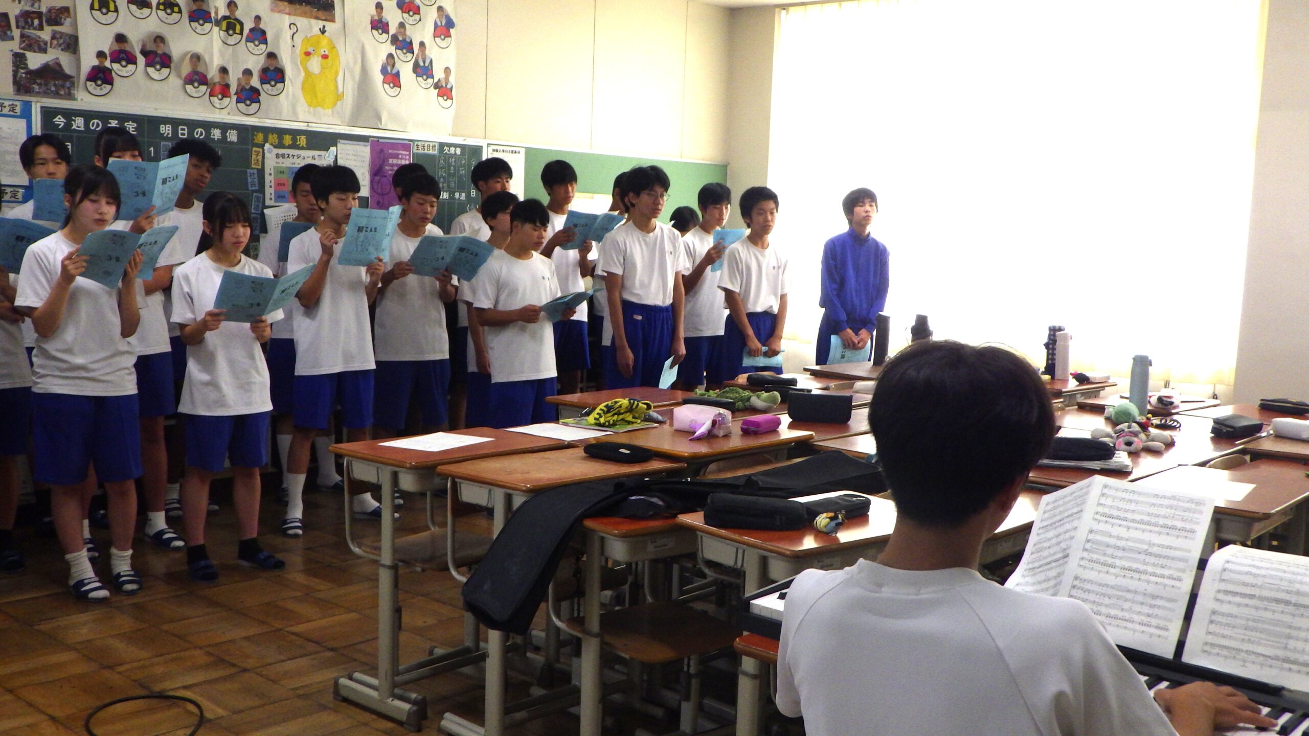 蟹北祭(文化祭)では、合唱コンクールを行います。曲は、各学級で決めました。指揮者、パートリーダー、伴奏者が中心となり練習に取り組んでいます。