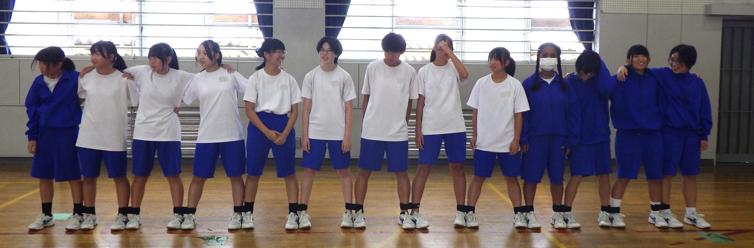 学校ブログ 「結束」練習(2年生) 2025.09.242025.10.22 by kaniekita002 2025年9月24日(水) 体育祭での学年競技「結束」の練習を行いました。はじめは、一歩進めることも難しかったですが、声を掛け合い、気持ちをそろえることで、リズムよく歩くことができるようになってきました。気を抜くと、すぐに全員の足並みがそろわなくなります。体育祭当日は、いかに全員の結束を強くするかが重要となります。