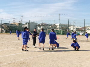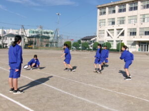 学校ブログ アルティメット(3年 体育科) 2025.10.30 by kaniekita002 2025年10月28日(水) 3年生女子は、アルティメットに取り組みます。今日が第1時間目です。アルティメットのルールを確認したり、チームでパスの練習をしたりしました。