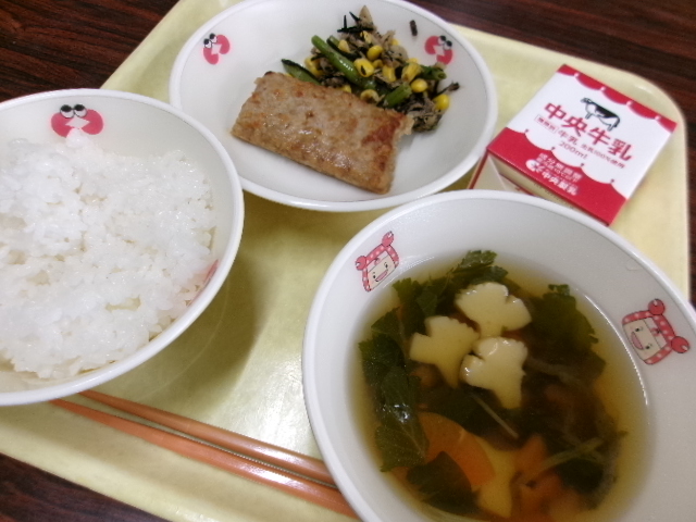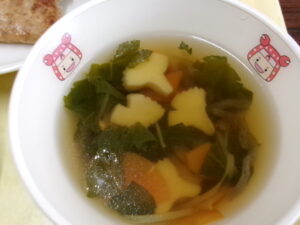 学校ブログ 今日の給食 11月13日(木) 2025.11.18 by kaniekita002 2025年11月13日(木) 【献立】牛乳 ご飯 秋のふきよせ汁 手作り和風ハンバーグ ひじきの炒め煮 <ふきよせ汁> 「ふきよせと」は、様々なものを集めるという意味があります。 落ち葉をイメージし、いちょうの形をした「かまぼこ」が入っています。見つけてみてください。