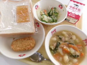 【献立】牛乳 スライスパン 🍎りんごジャム ポトフ クリーミーコロッケ チキンサラダ