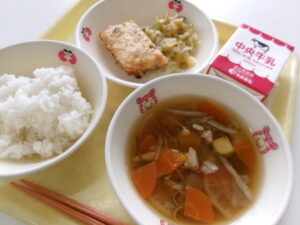 学校ブログ 今日の給食 11月18日(火) 2025.11.19 by kaniekita002 2025年11月18日(火) 【献立】牛乳 ご飯 けんちん汁 手作りはんぺん 福神和え <手作りはんぺん> はんぺんは、白身魚のすり身から作られています。「手作りはんぺん」は、給食センターで魚のすり身にダイスチーズ、枝豆、紅しょうが、とうもろこしを混ぜて、油で揚げて作られています。今日も味わっていただきました。