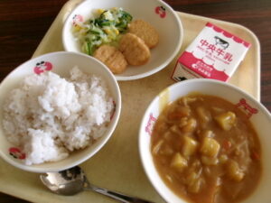 学校ブログ 今日の給食 1月8日(木) 2026.01.082026.01.21 by kaniekita002 2026年1月8日(木) 蟹江中学校3年E組からのリクエスト「米粉のカレーライス」!(^^)! 【献立】牛乳 麦ごはん 米粉のカレー チキンナゲット キャベツとコーンのサラダ <リクエスト給食> 今日から2026年の給食が始まります。新年はじめの給食は、米粉のカレーライスです。1月も中学3年生からリクエストのあった給食が出されます。献立表に星印とリクエストのあったクラスが書かれています。お楽しみに(^^♪ 2026年も、美味しくいただき、元気に過ごしましょう‼