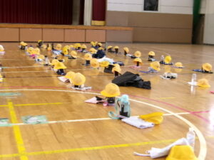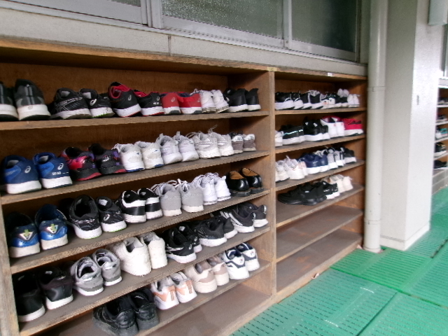 きれいに整頓された靴。体育館に置かれた手荷物もきれいに整頓されていました。