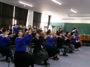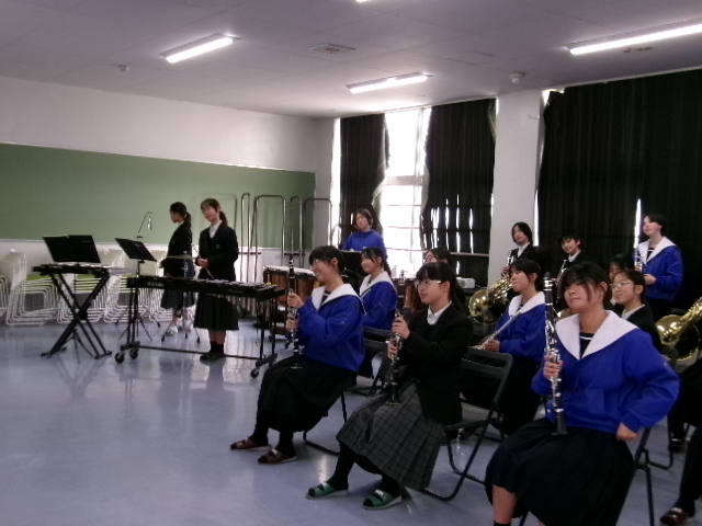 新1年生を迎えるために、音合わせをする吹奏楽部の先輩たち。