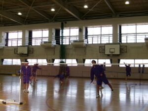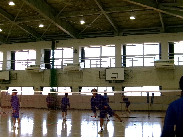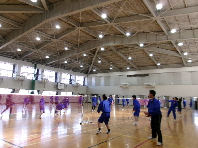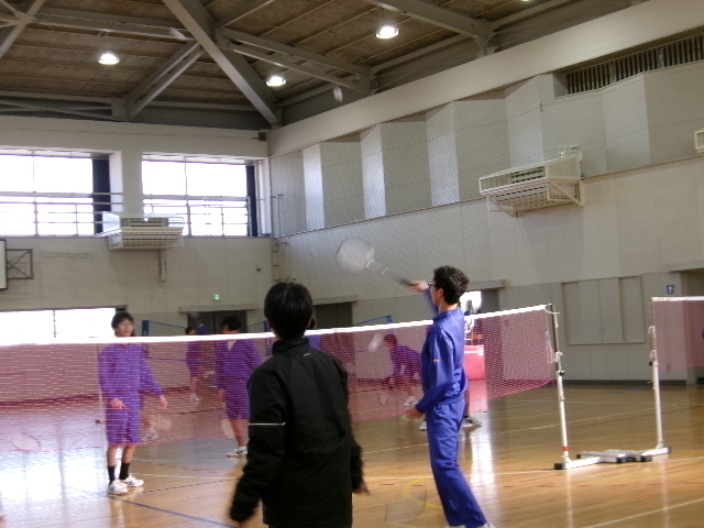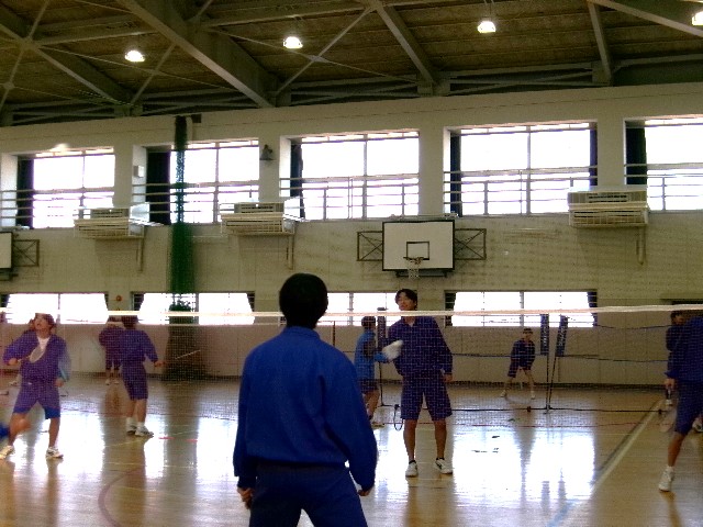 3年生の体育では、バドミントンの授業を行っています。どのクラスも非常に高い熱量で取り組んでいます。3年生ともなると、シャトルのスピードが速く、ネット際での攻防も迫力があります。