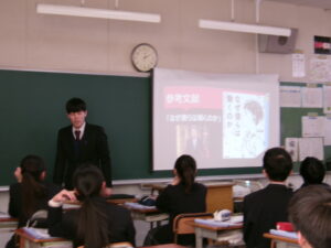 卒業式の合唱練習に取り組みました。歌詞に想いをのせらせるよう、言葉を大切にして歌うことに気を付けました。