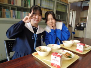 今日の副菜は、ほうれん草とかつお節で「ほうれん草のおかか和え」です。生徒からは、「おかかの風味がとっても、美味しかった」との声がありました。今日も美味しくいただきました(^^♪