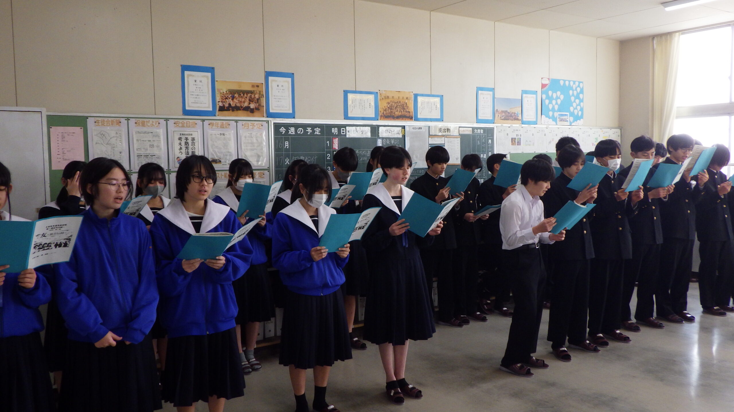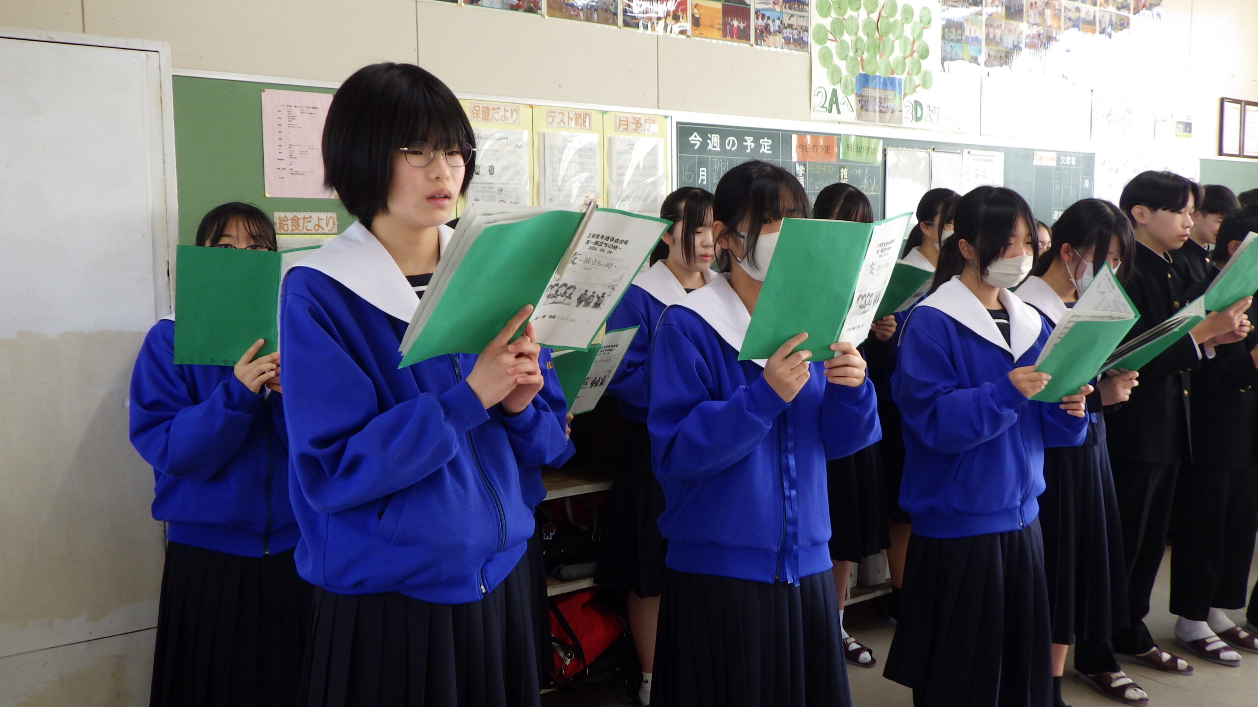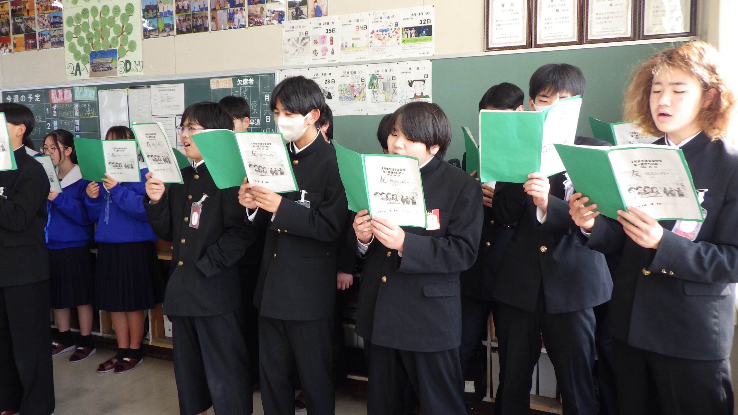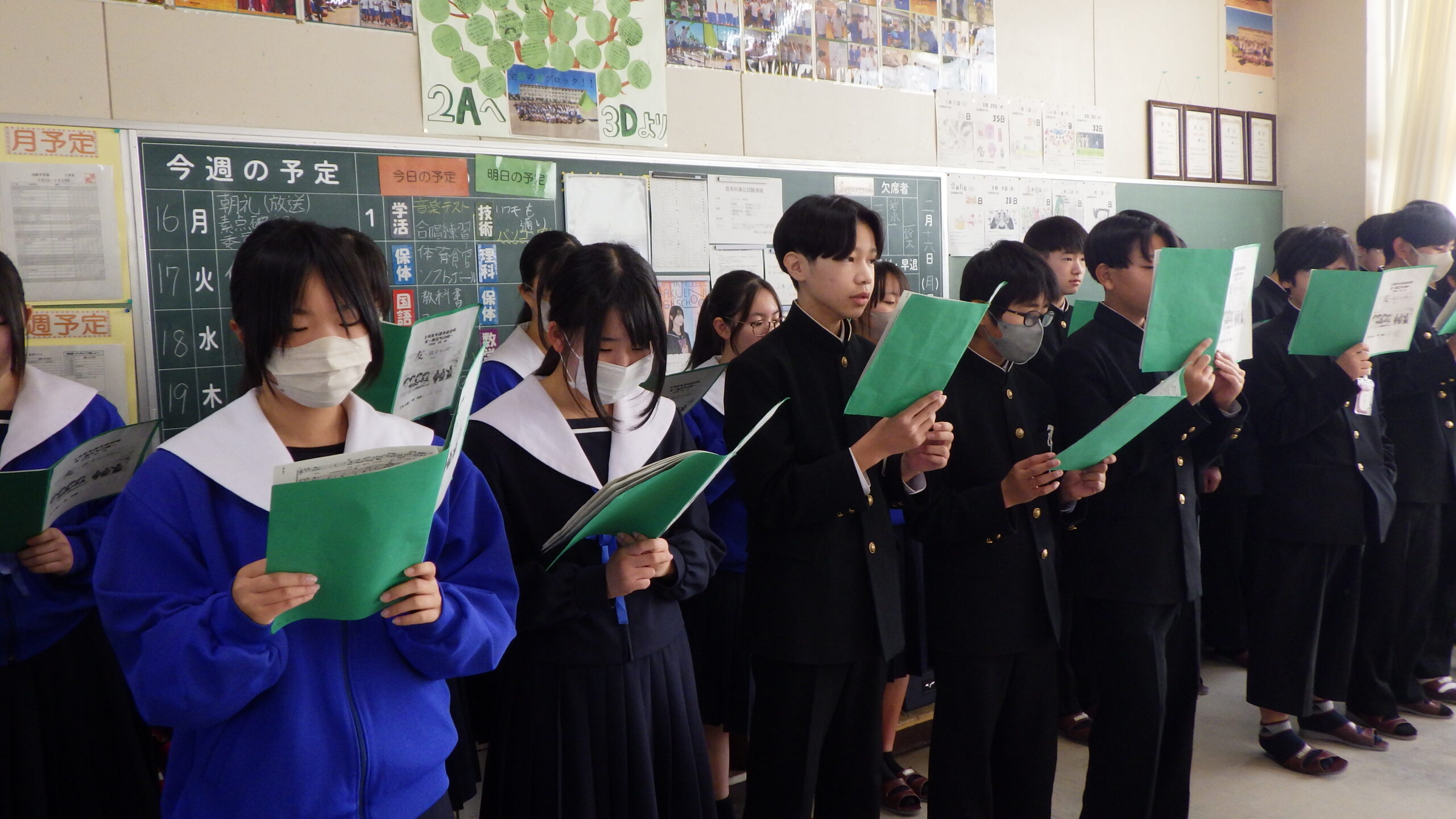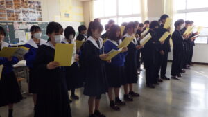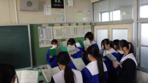 2年生の各教室から、歌声が響いてきました。 現在、2年生は「3年生を送る会」で披露する学年合唱の練習に励んでいます。