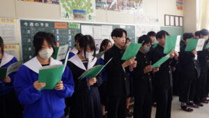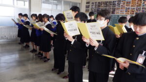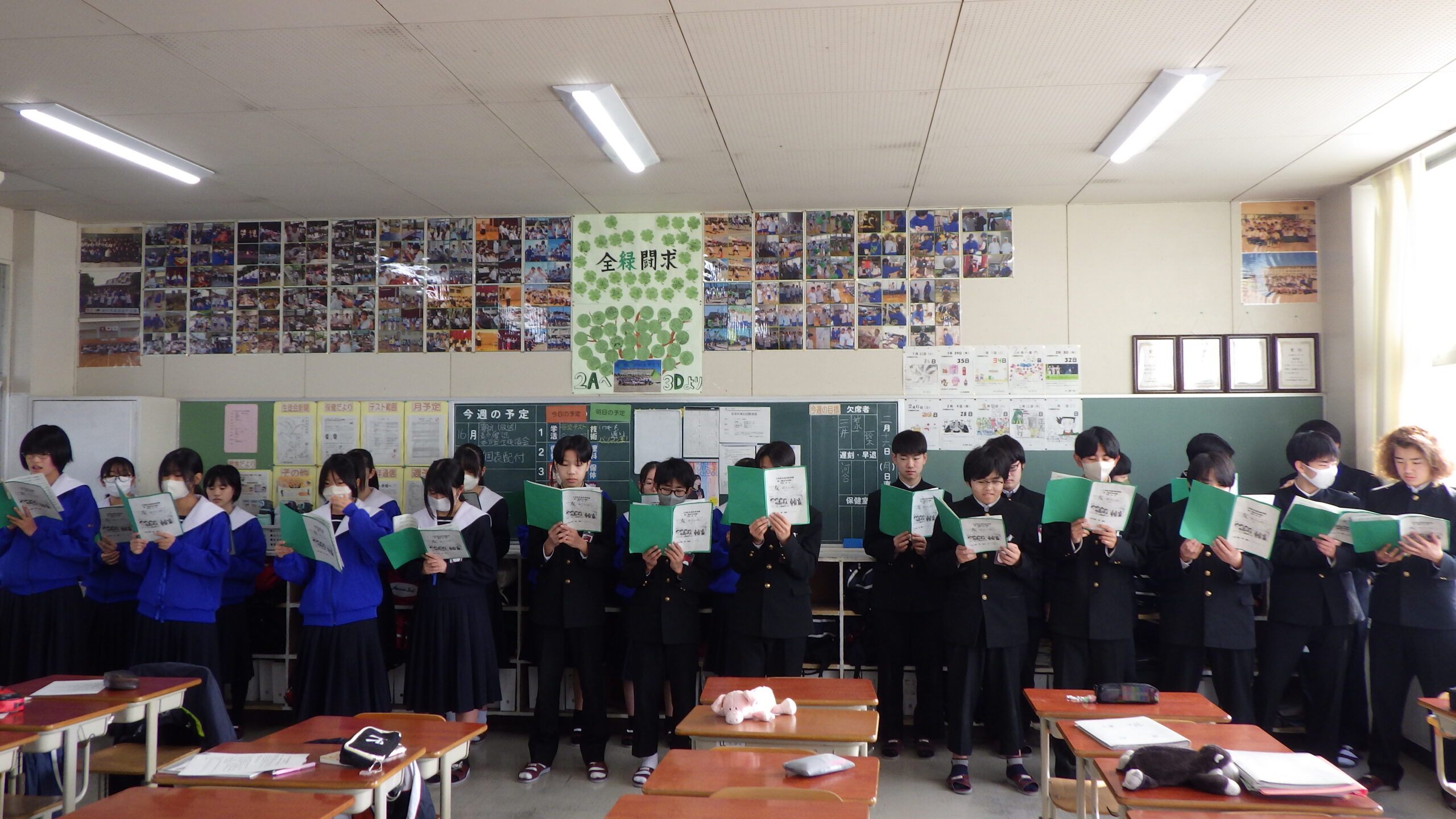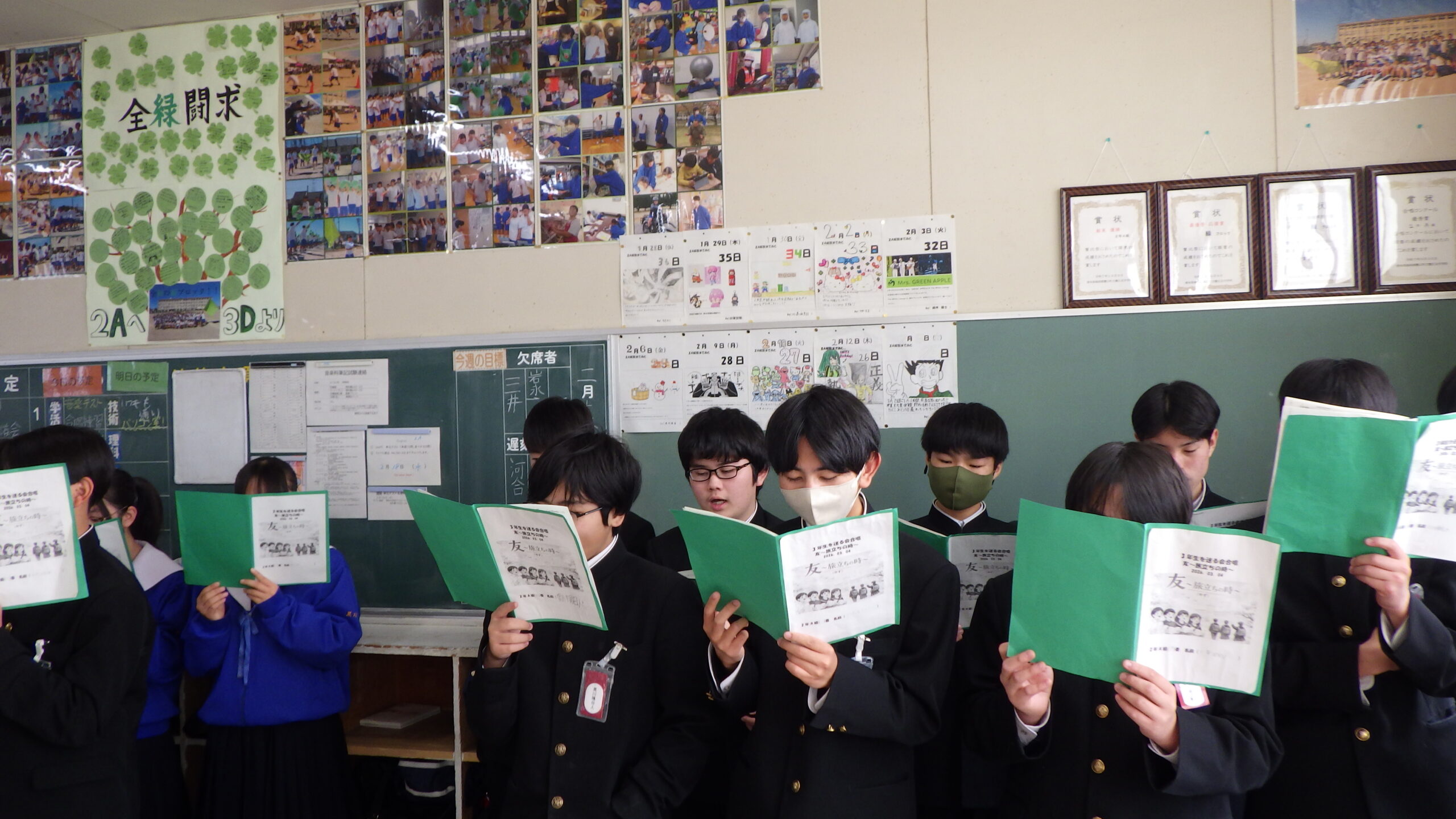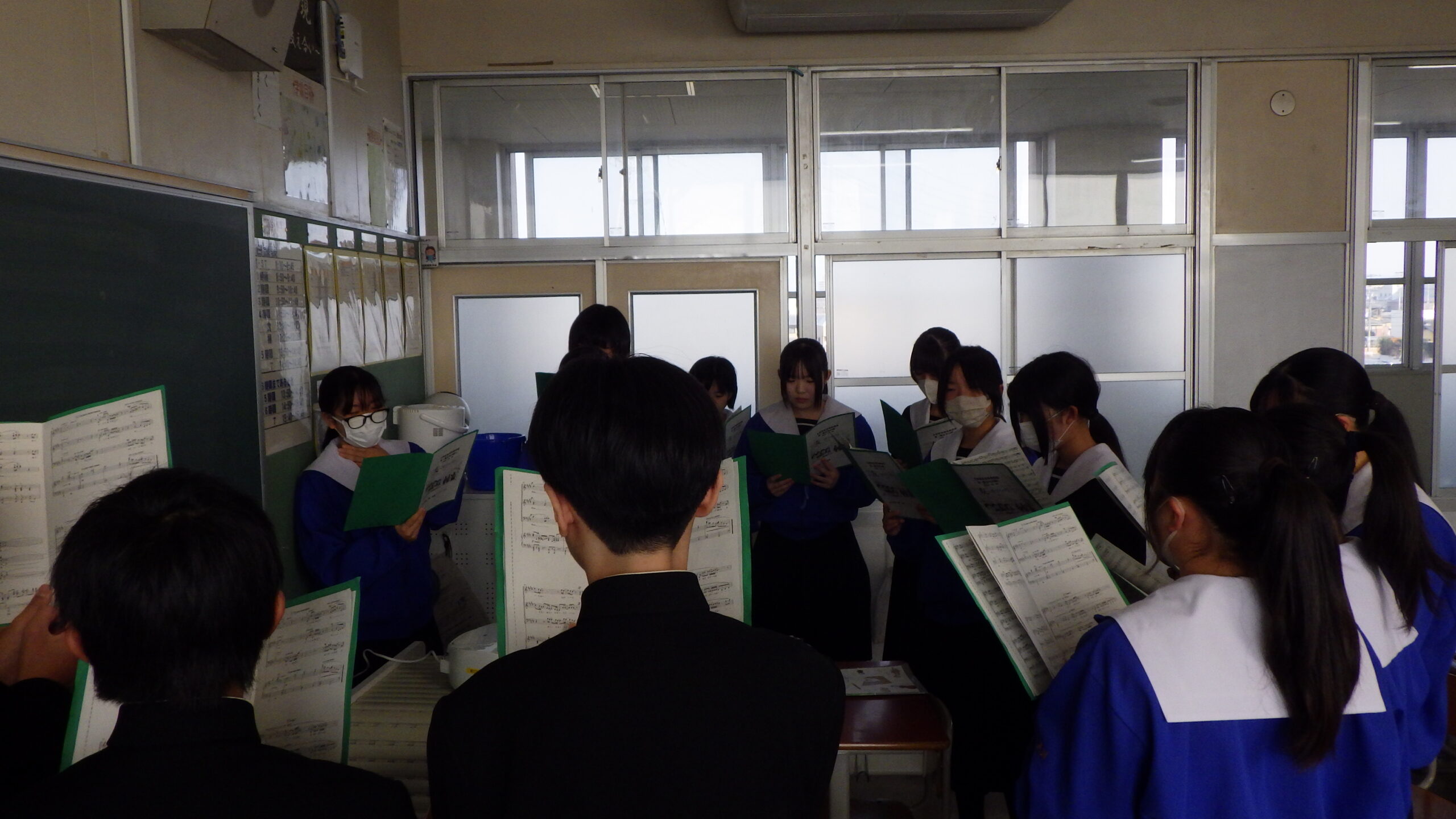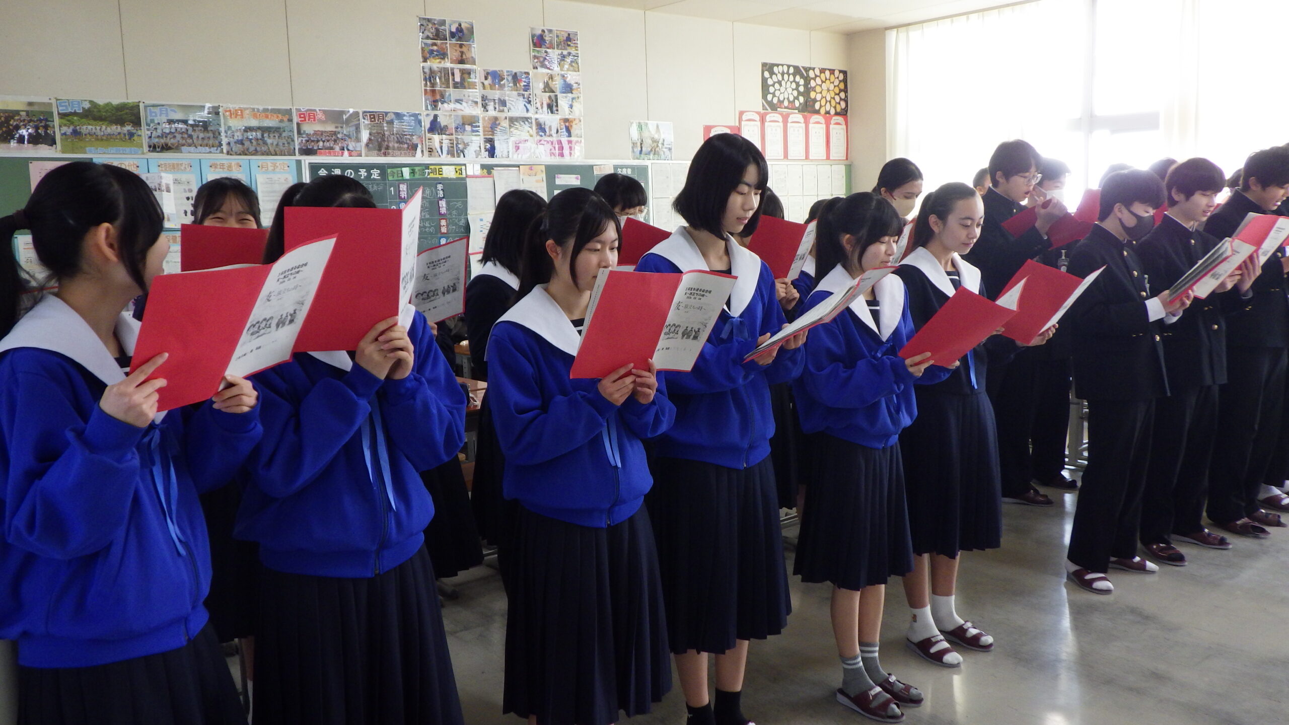 2年生の各教室から、歌声が響いてきました。 現在、2年生は「3年生を送る会」で披露する学年合唱の練習に励んでいます。