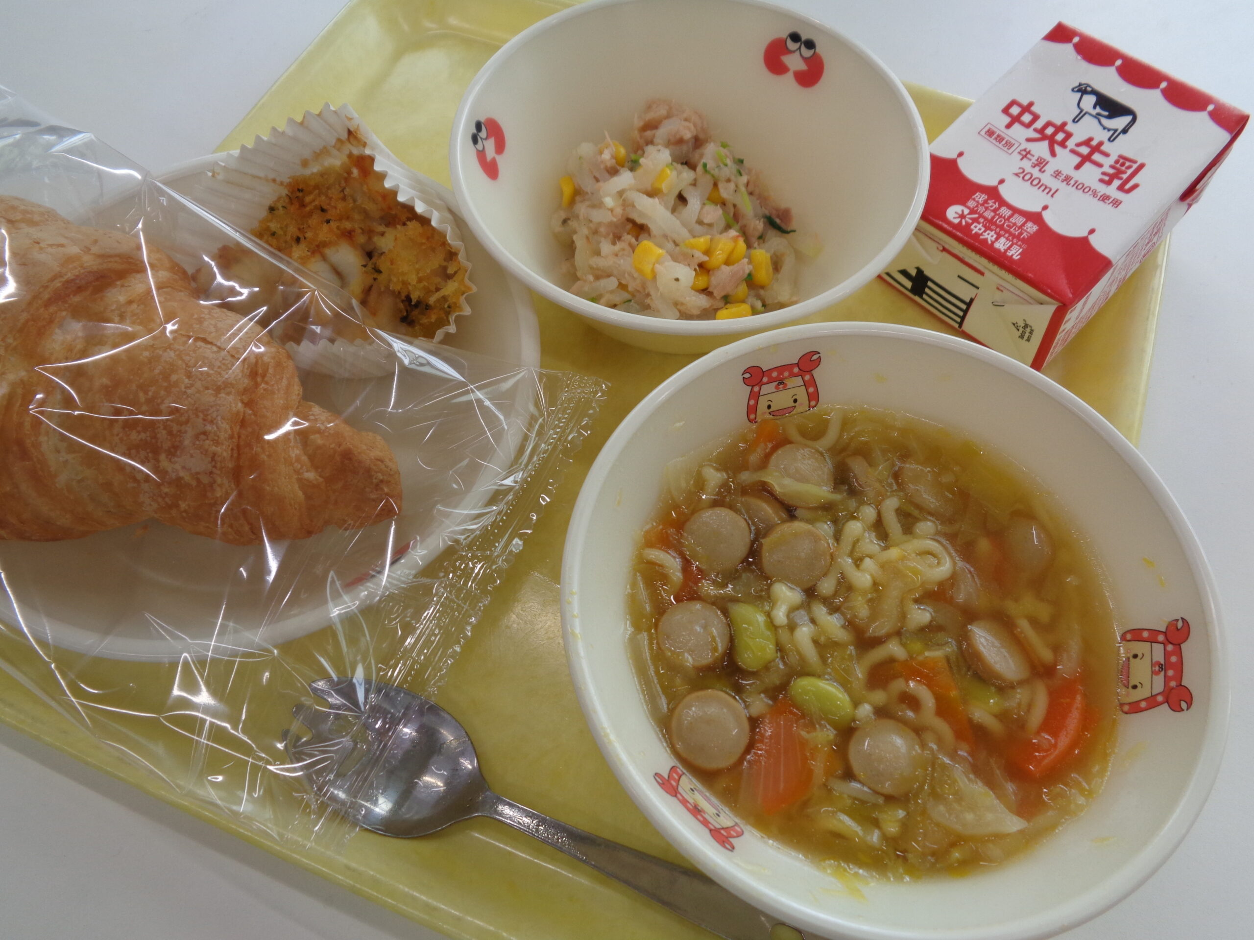 【献立】牛乳 クロワッサン アルファベットスープ 鱈のパン粉焼き 大根サラダ
