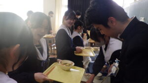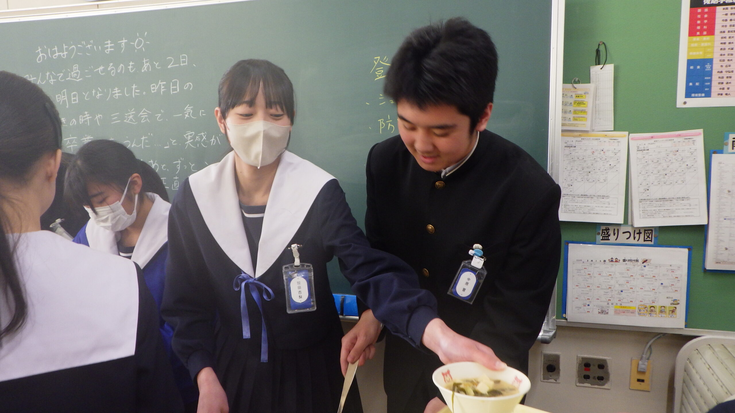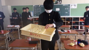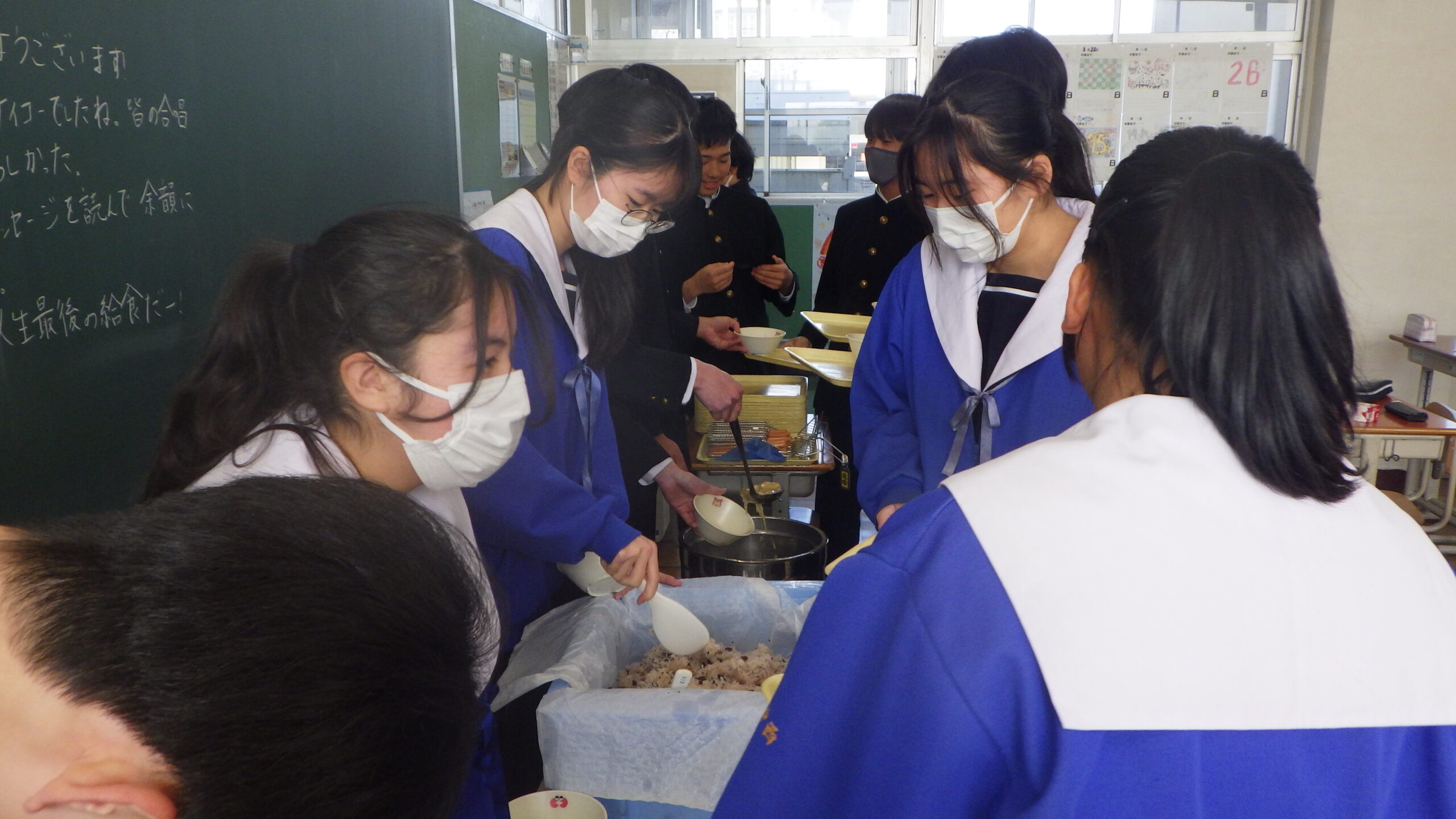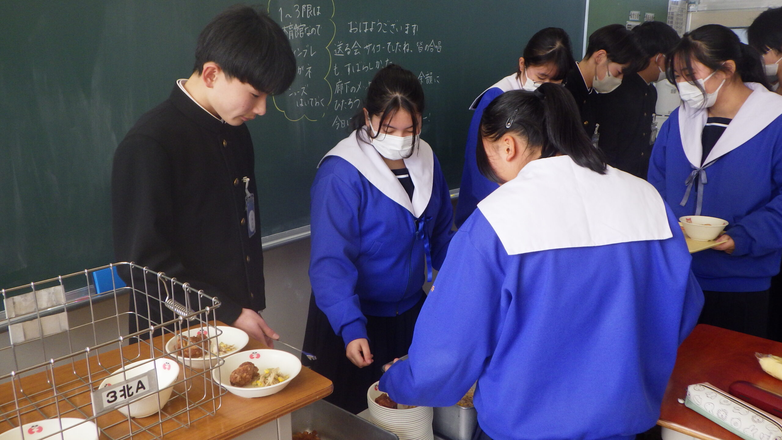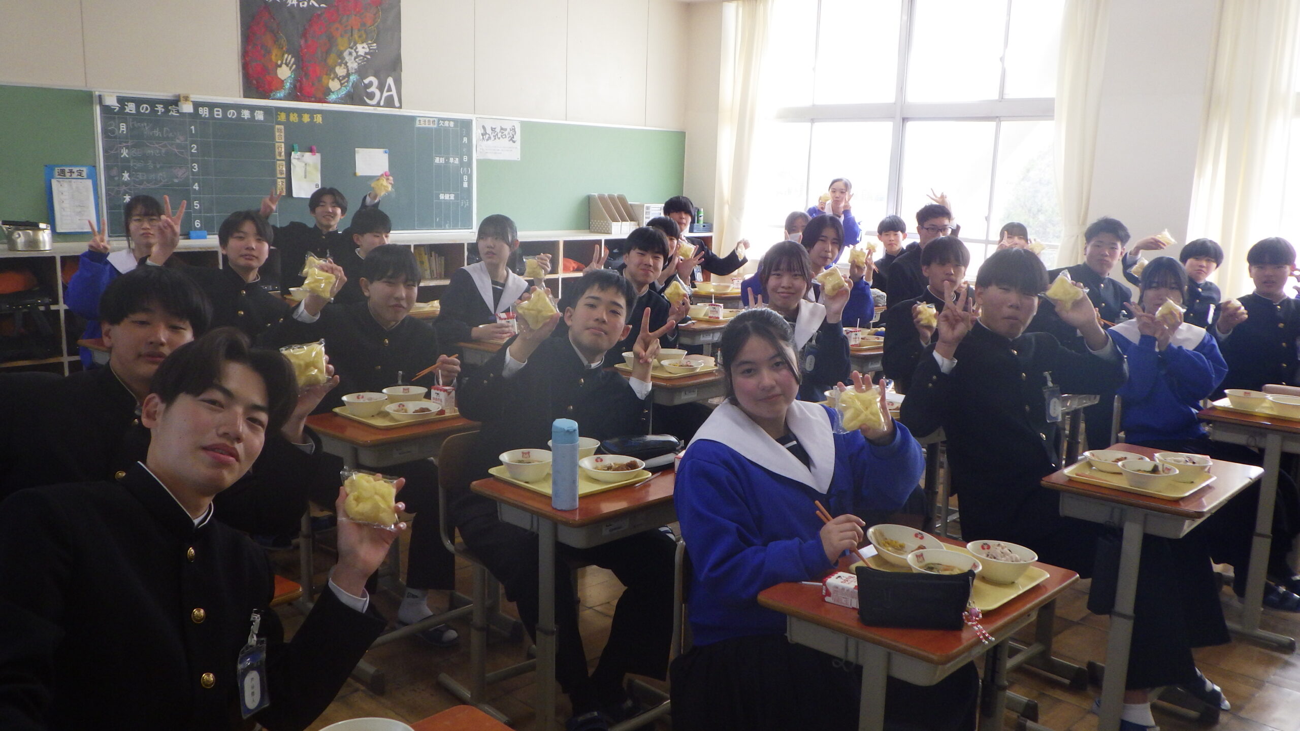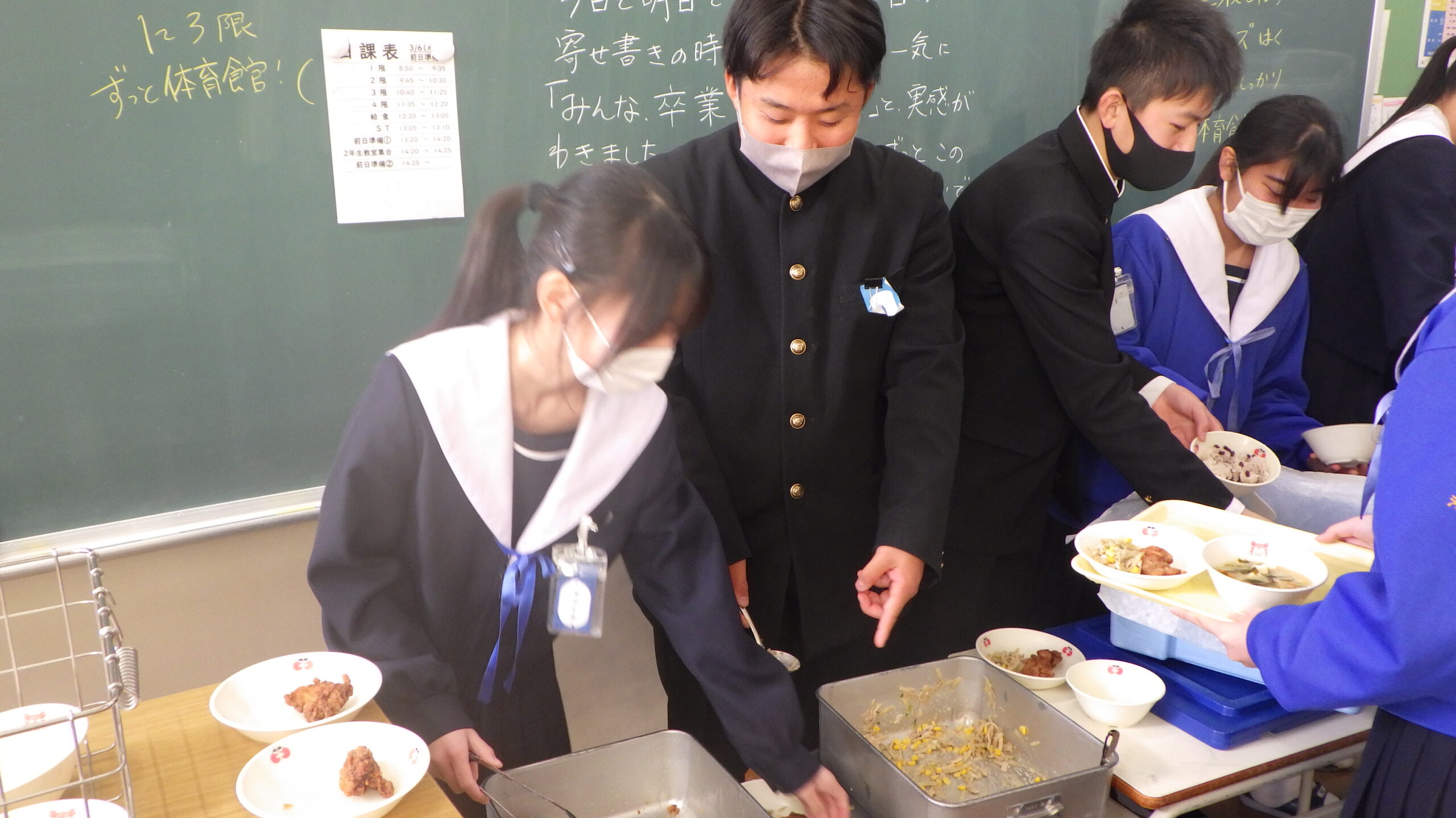 3年生のみなさん、ご卒業おめでとうございます。これからは、食事を自分で選んで食べる機会が増えていきます。食べ方に悩んだ時には、給食を思い出して、栄養バランスを意識してくださいね。