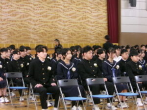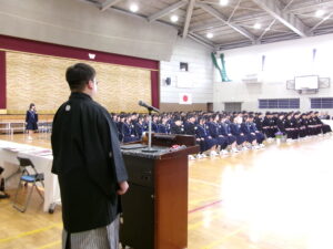 学校ブログ 旅立ちの日 ~第46回卒業式~ 2026.03.06 by kaniekita002 2026年3月6日(金) 蟹江北中学校第46回卒業式を挙行しました。127名の3年生が蟹江北中学校を卒業しました。 厳粛な空気の中、最後を締めくくったのは卒業生による「門出の歌」です。 体育館の空気を震わせる力強くも繊細な歌声に、多くの参列者が目頭を熱くしました。3年間の思い出を胸に、最高の合唱を体育館いっぱいに響かせた卒業生。 ご卒業、本当におめでとう!