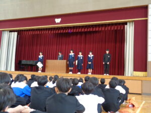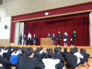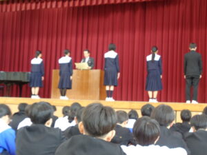 その後、春休みに行われた部活動の表彰披露を行いました。