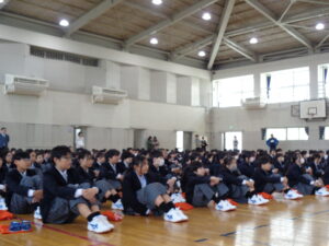 登校してまだ3日目ですが、静かに整列し、相手の目を見て話を聞く生徒たちの姿からは、「この一年を最高の年にしよう」という決意がが感じられました。月曜日の最高のスタートを切った生徒たち。これからの活躍が本当に楽しみです(^^♪