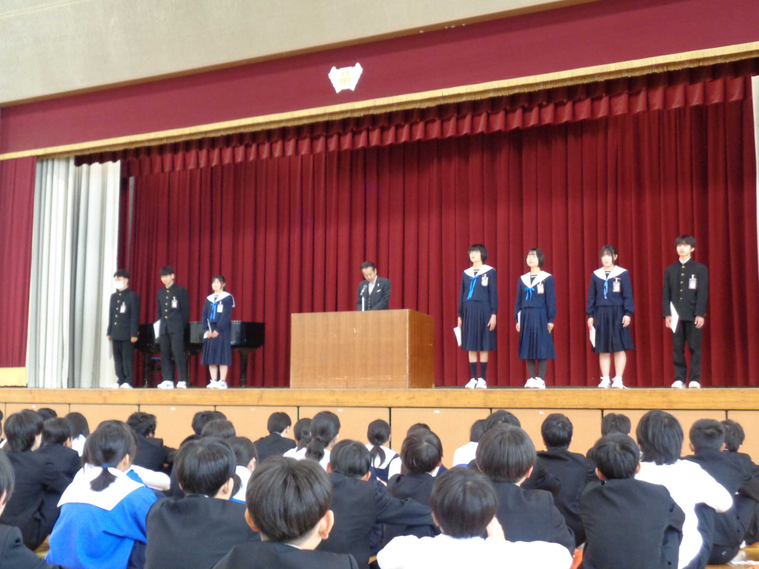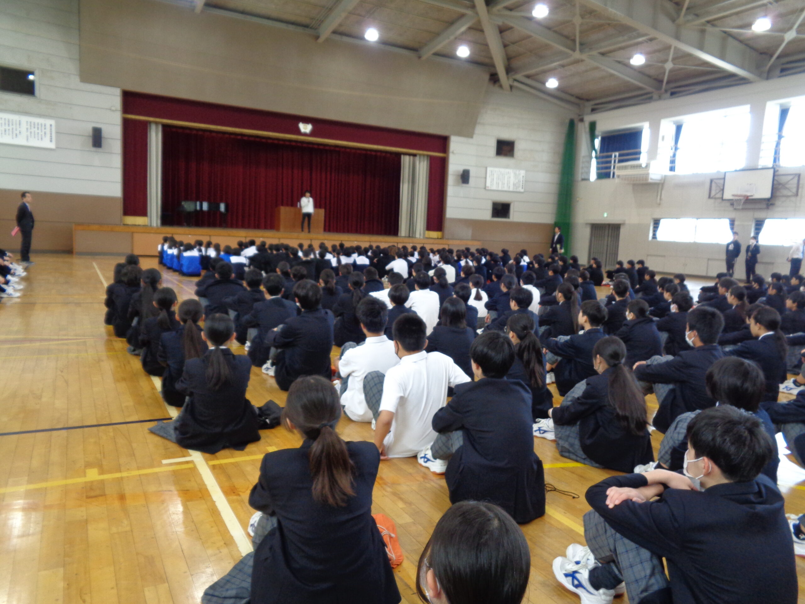 登校してまだ3日目ですが、静かに整列し、相手の目を見て話を聞く生徒たちの姿からは、「この一年を最高の年にしよう」という決意がが感じられました。月曜日の最高のスタートを切った生徒たち。これからの活躍が本当に楽しみです(^^♪