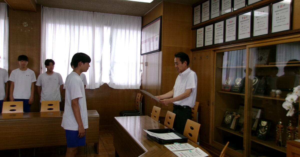 2025年7月18日(金) 1学期終業式を行いました。暑さ対策のため、リモートで実施しました。 初めに、中学校総合体育大会の表彰を行いました。その後、校長先生から、健康のこと、トラブルに巻き込まれないようにすること、交通 […]